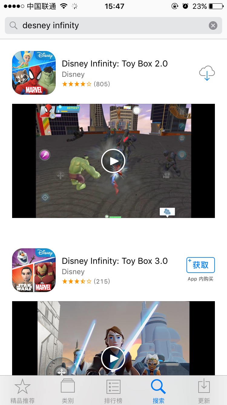 首先,打开APP Store,搜索desney infinity,这个游戏大小是3.8GB,所以当你的iPhone剩余空间小于3.8GB的时候都可以搜索这个游戏,其他应用也可以,越大越好。