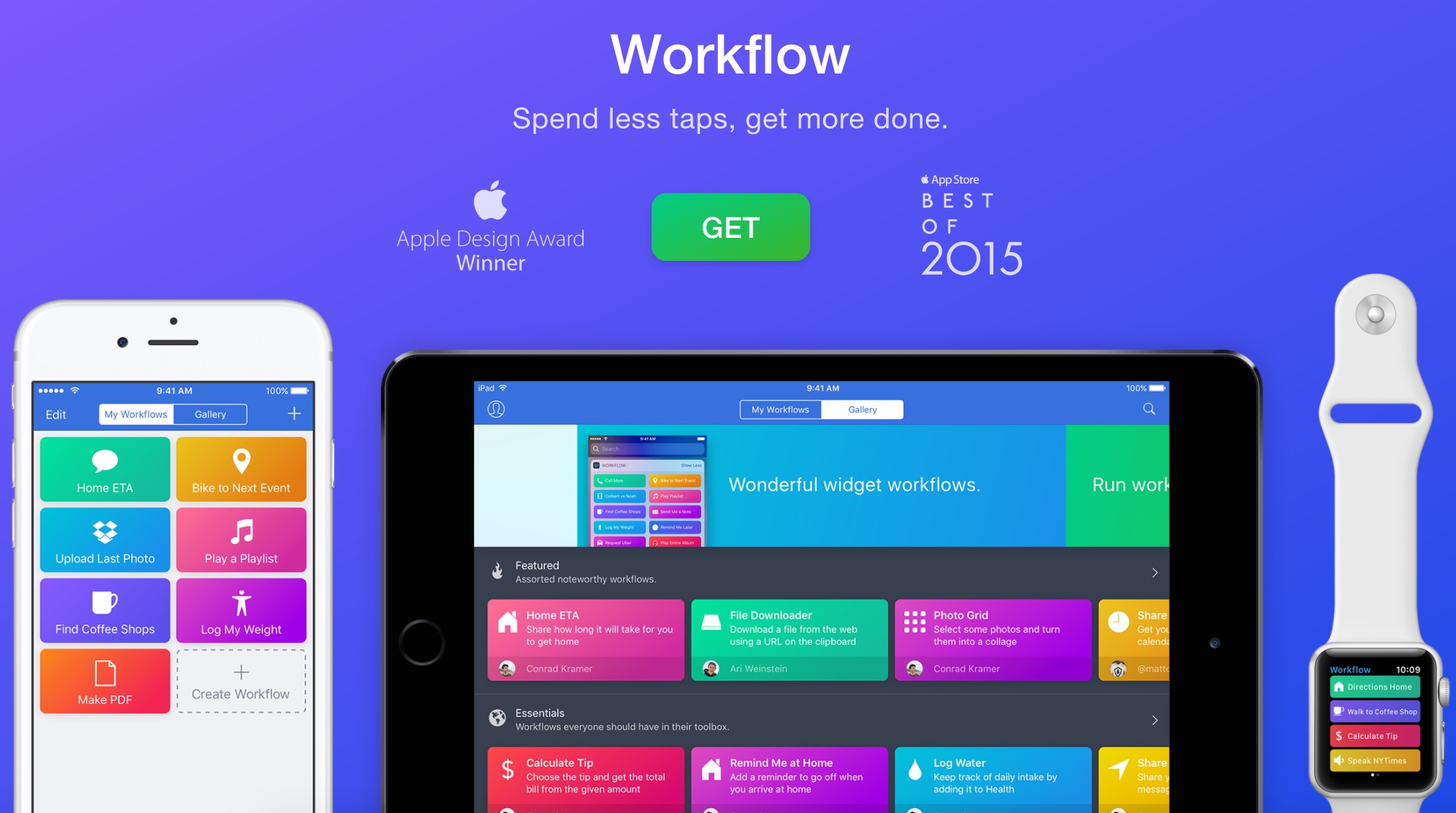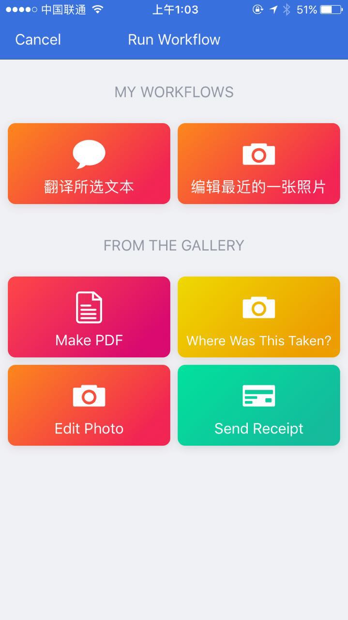 Workflow iOS APP下载地址:https://itunes.apple.com/cn/app/workflow-powerful-automation/id915249334?mt=8
