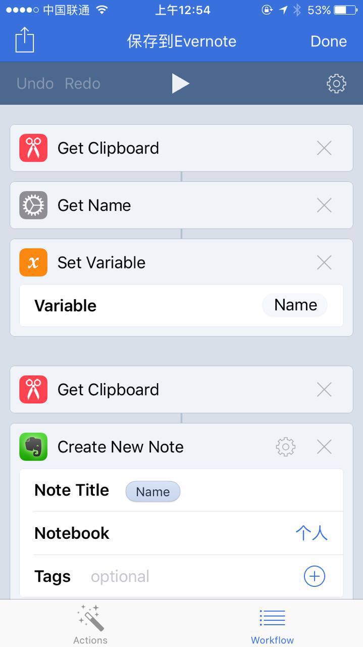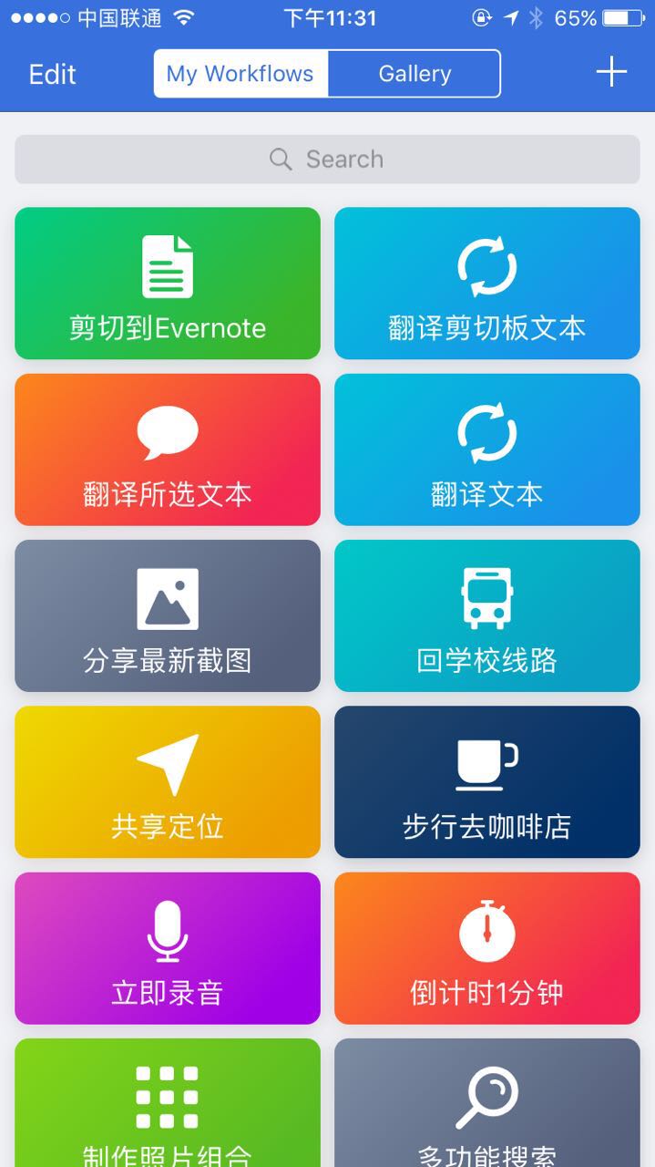 Workflow 如它名字一样是工作流的意思,它是一款 iOS 平台的神级自动化流程应用。简单的说就是他可以将一系列操作流程或各类任务串联起来,然后一键操作进行处理。例如,翻译剪切板文本,一键搜索剪切板内容,点击录音,一键将剪切板内容保存到印象笔记,一键搜索回家的路线……