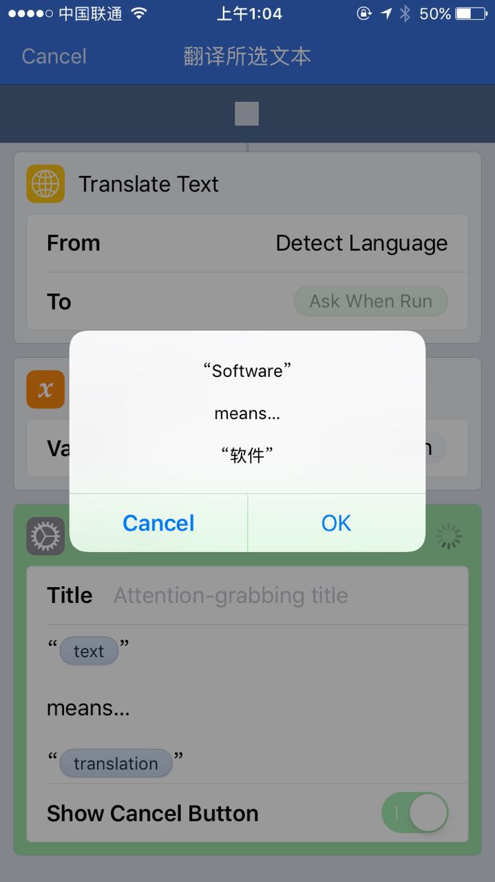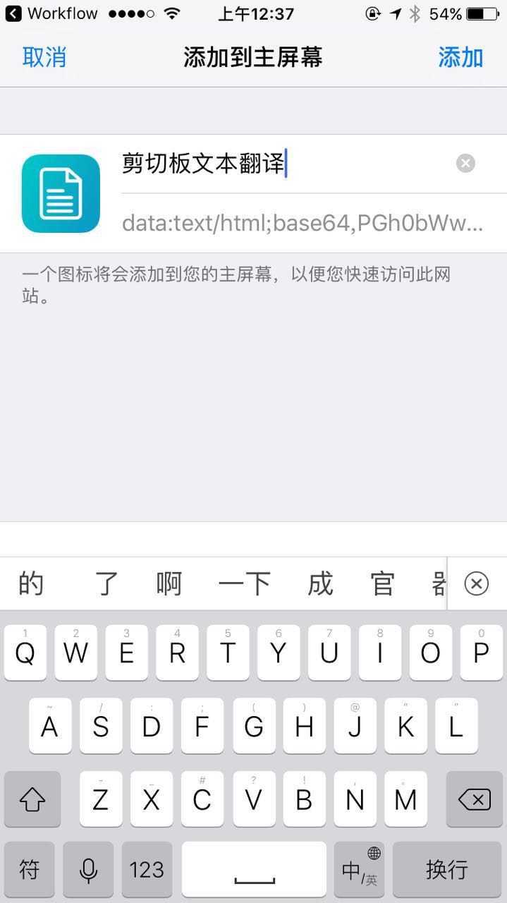 6.输入框输入文本进行翻译|下载地址:https://workflow.is/workflows/56a14d8b4868499482d7e666fbc6d048
