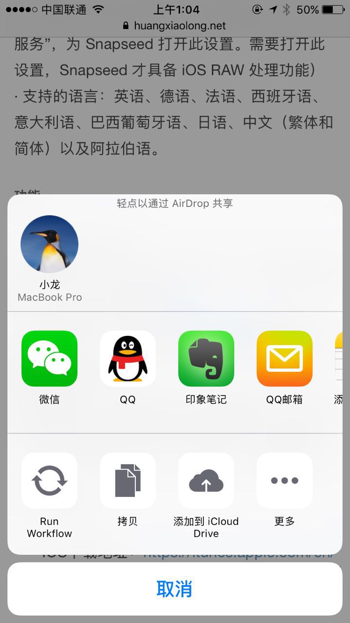13.编辑最近的一张照片|下载地址:https://workflow.is/workflows/a5343dea98a140baad1b21d7878ac254ps:拍照后可以直接通过下拉栏小部件或桌面图标一键进入编辑照片界面,Workflow的照片编辑功能是由PS公司Adobe提供的Creative Cloud服务,功能比较简洁应付普通修图还是可以的。